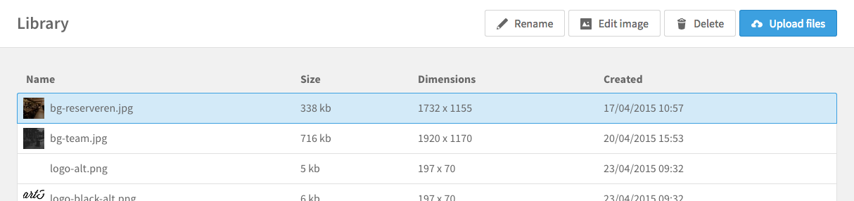 - Rechtsboven in het panel zullen er acties verschijnen. Sommige acties zullen enkel zichtbaar zijn bij het selecteren van items. Het toevoegen van een item is bv. altijd mogelijk, het verwijderen enkel als er minstens één item geselecteerd is.